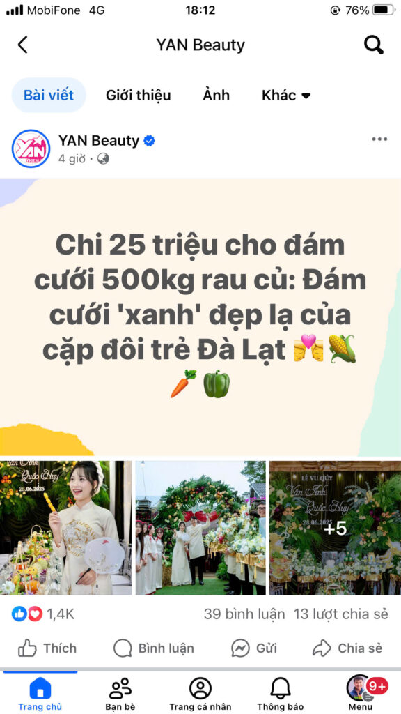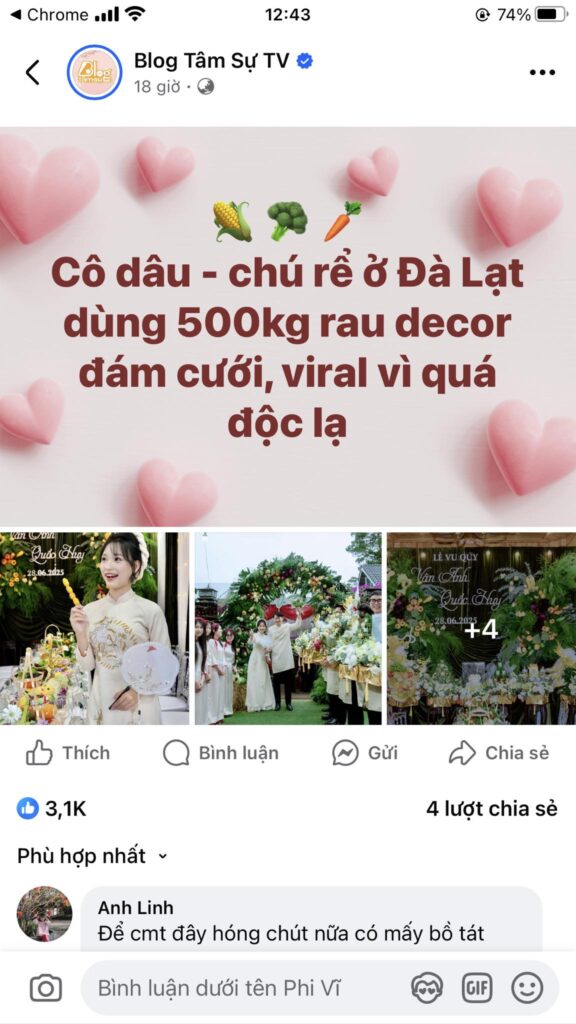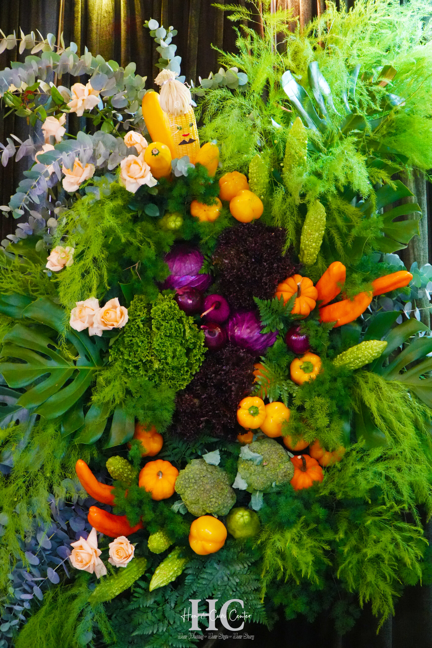 Hoa Cưới Center một lần nữa tạo dấu ấn đặc biệt với concept trang trí gia tiên bằng rau củ quả độc đáo, sáng tạo, mang đậm hơi thở vùng đất Đà Lạt – lễ cưới của cô dâu Sim Sim (Vân Anh) nhanh chóng trở thành tâm điểm viral trên mạng xã hội.